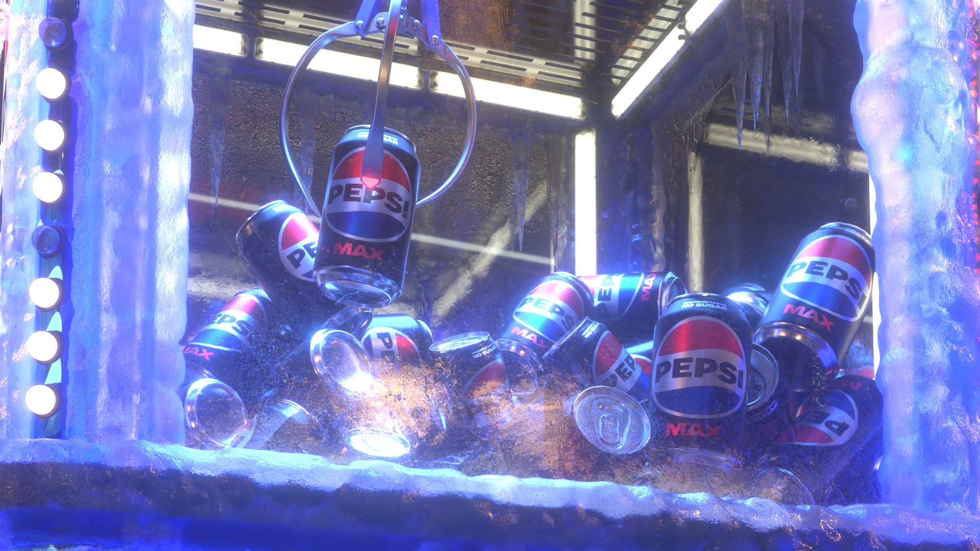 A FOOH for Pepsi featuring a towering ice-covered claw machine frozen shut and stuck in place. As people gather and step onto a frozen button, the ice begins to crack and break, bringing the machine back to life. Once it activates, Pepsi Max cans burst out of the machine in a satisfying payoff.